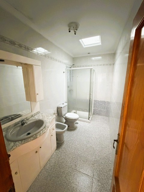 Planta segunda con hall distribuidor, 3 dormitorios, dos simples y otro de mayor tamaño. Cuarto de baño con plato de ducha, bidé, lavabo e inodoro. Dormitorio principal.